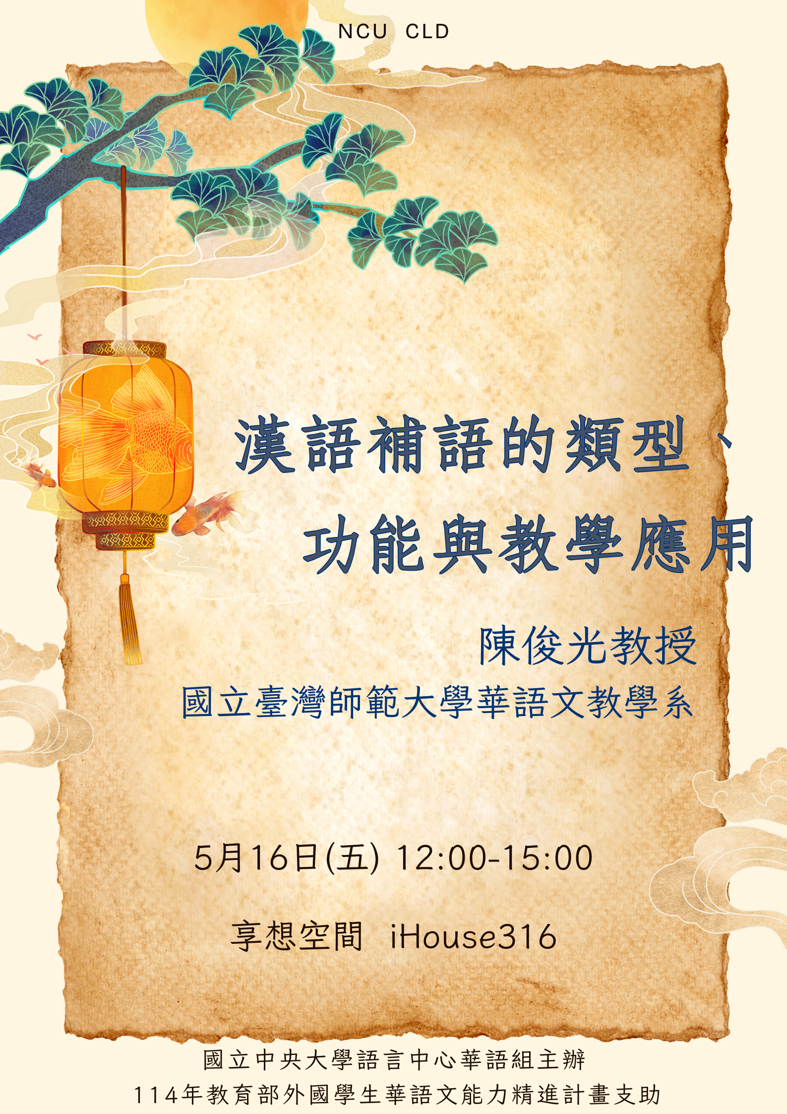 邀請國立臺灣師範大學華語文教學系 陳俊光教授蒞臨演講。